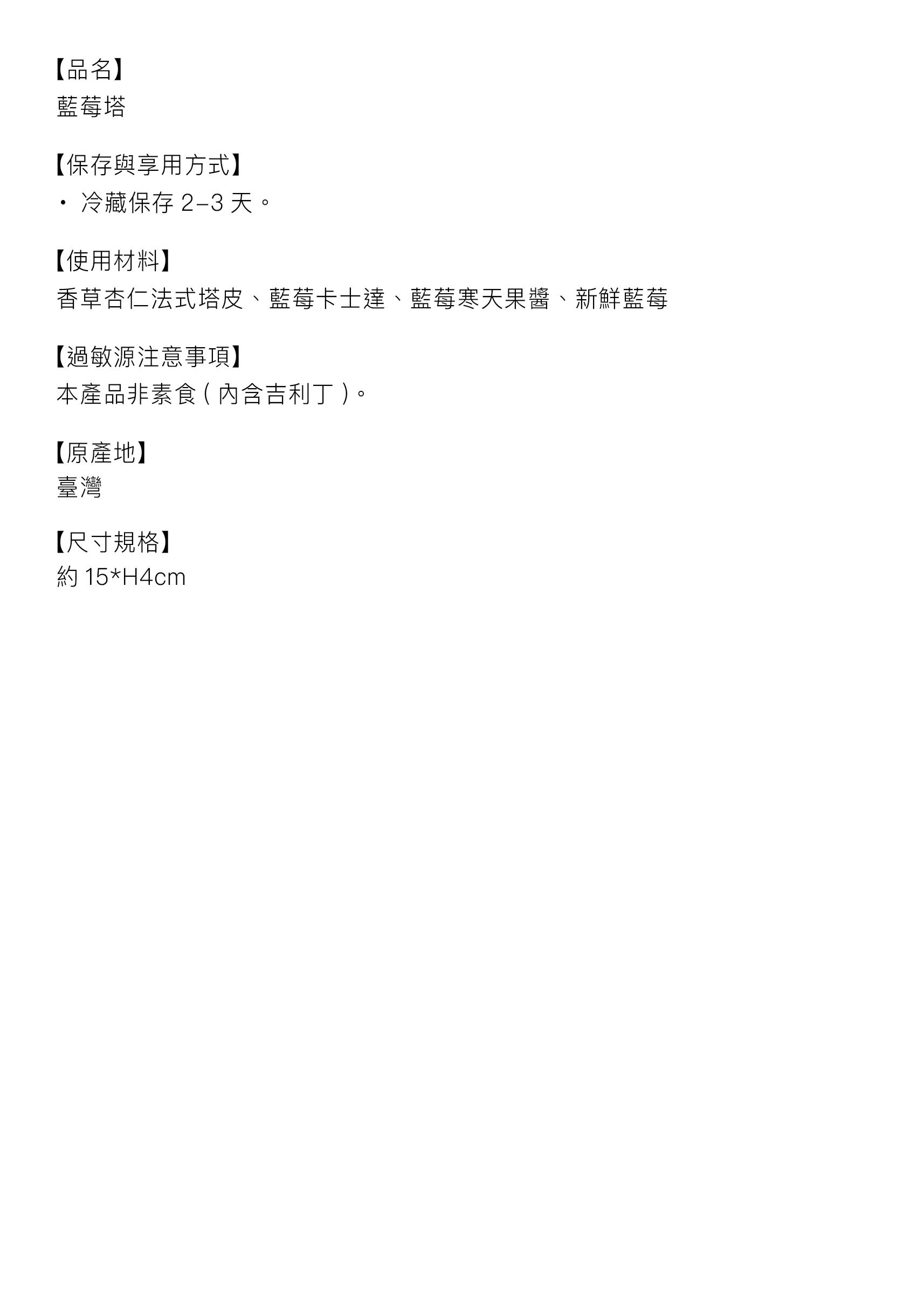 【成分內容】香草杏仁法式塔皮、藍莓卡士達、藍莓寒天果醬、新鮮藍莓