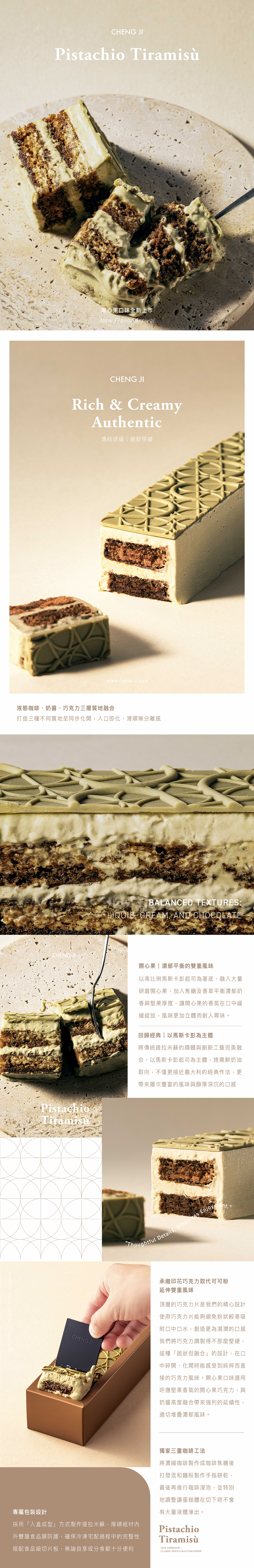 在甜點的世界裡,承繼秉持著「在經典中尋求突破」的品牌精神,將傳統提拉米蘇的精髓與創新⼯藝完美融合。我們的提拉米蘇選擇回歸傳統,以⾺斯卡彭起司為主體,⽽非市⾯上常⾒的鮮奶油主導版本。這個選擇不僅更接近義⼤利的經典作法,更帶來層次豐富的風味與醇厚深沉的⼝感。